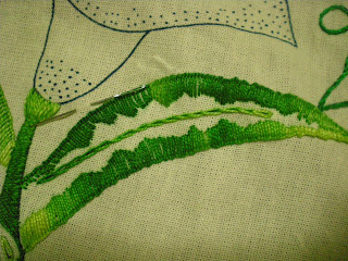 Este ponto que tem forma do Ponto Cheio é frequentemente usado para encher um desenho considerado muito grande ou muito irregular para ser coberto com Ponto Cheio. É também usado para dar o efeito sombreado. Na primeira carreira, os pontos são alternadamente longos e curtos e bem unidos para seguir o contorno do desenho. Os pontos das carreiras seguinte são feitos demaneira a dar ao trabalho uma superfície uniforme e macia. O diagrama mostra como o efeito da matiz e sombra pode ser conseguido.